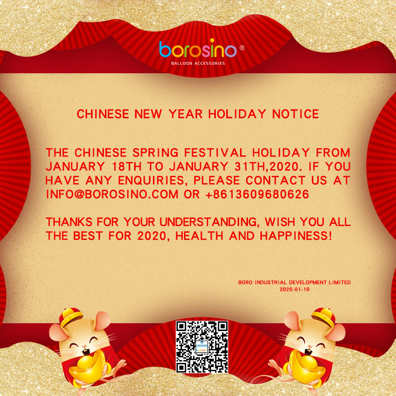 The Chinese Spring Festival holiday from January 18TH to January 31Th, 2020. If you have any enquiries, please contact us at info@borosino.com or +8613609680626