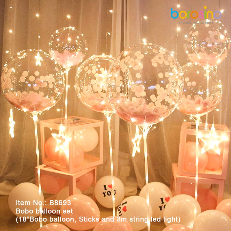 (18”Bobo balloon, Sticks and 3m string led light)