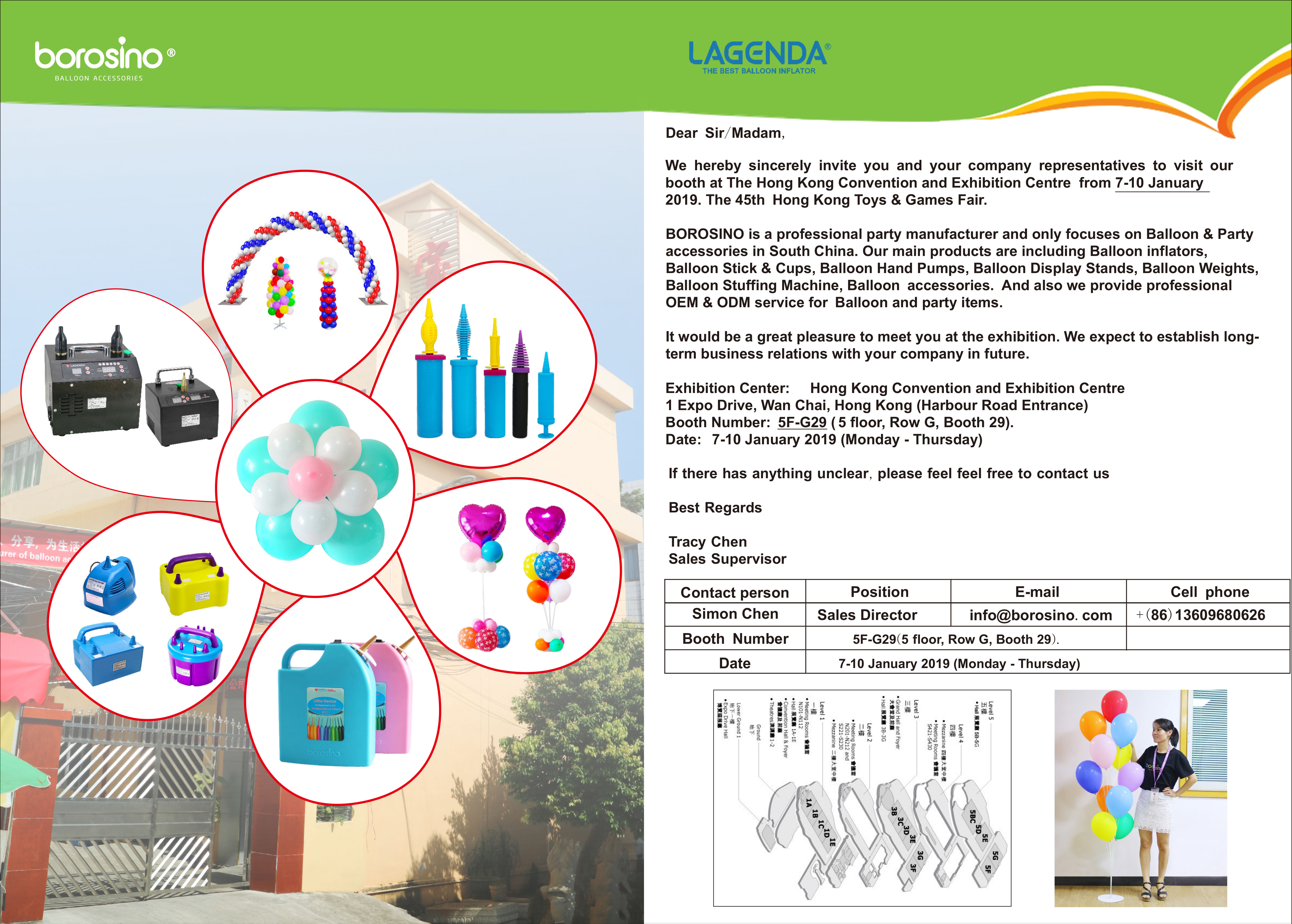 1月11-14日参加由香港贸发局举办2019年香港玩具展,摊位号是5F-G29, 热情欢迎国内外客户前来洽谈业务。