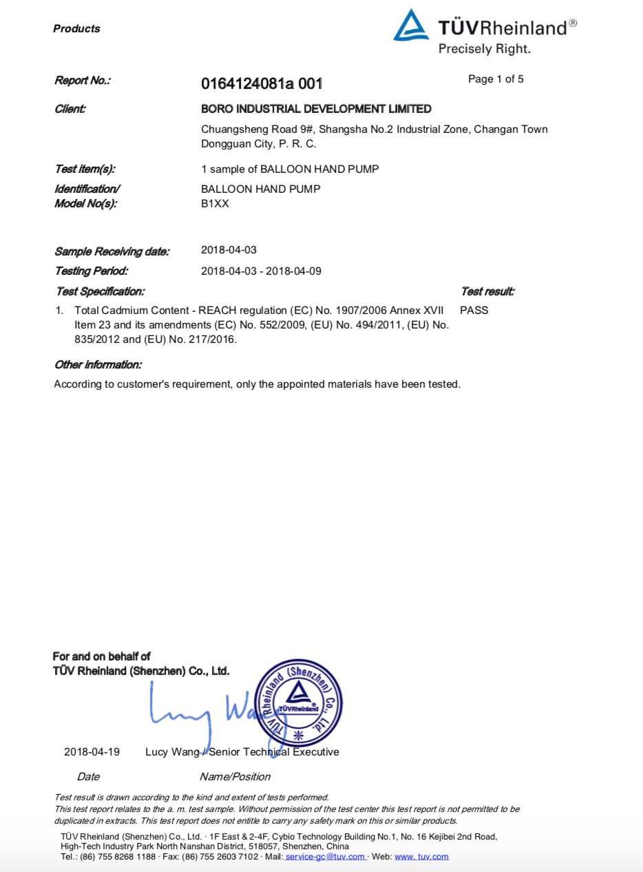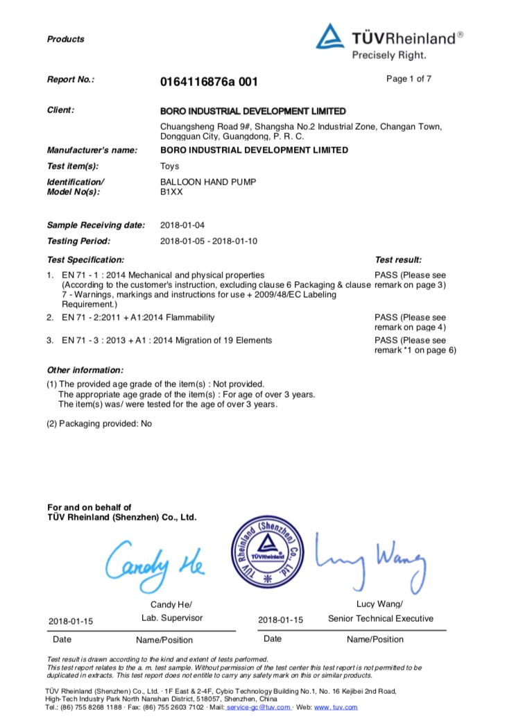 宝诺气球打气筒B102欧盟EN71认证